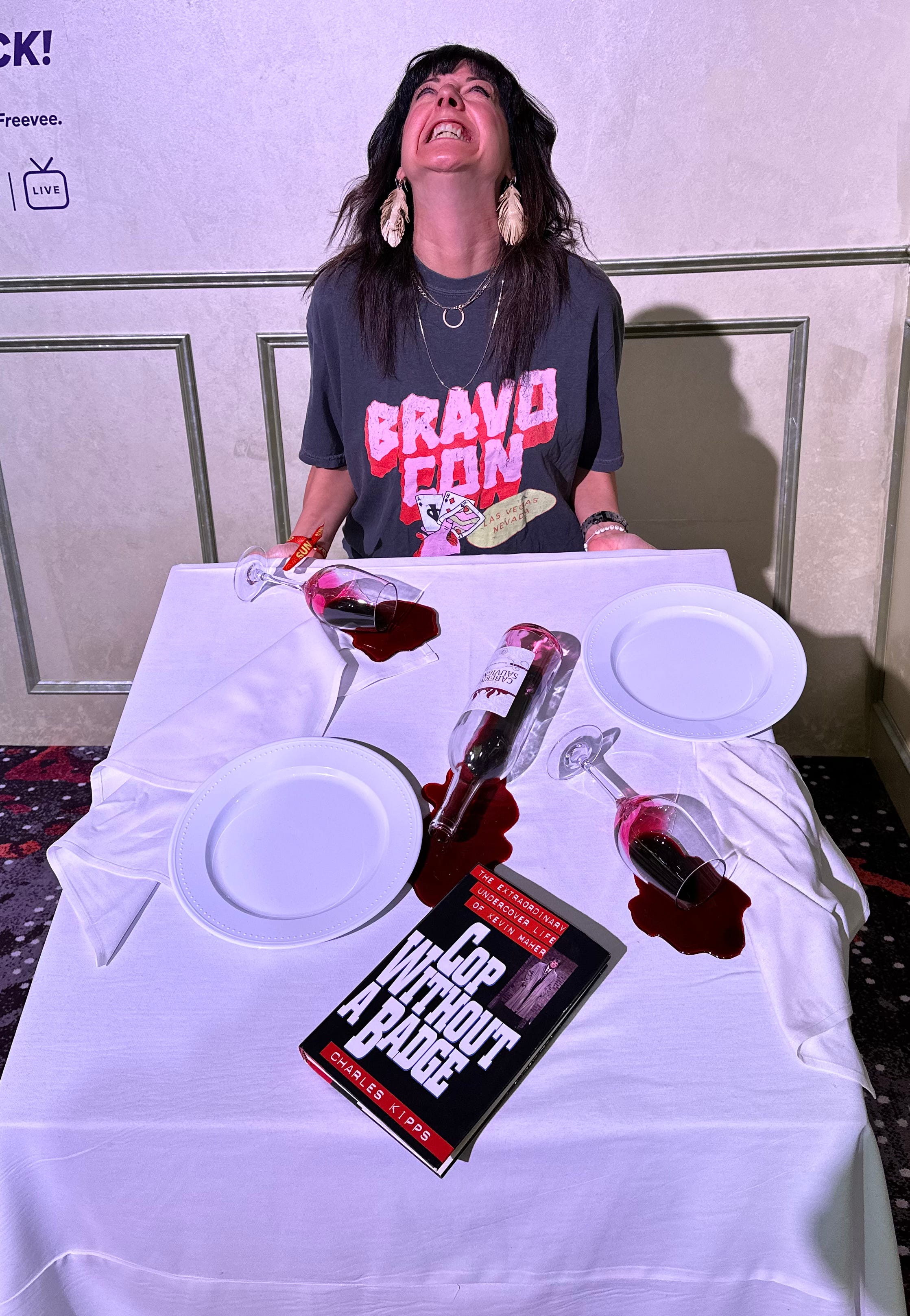 Our photo opp with Jenn Pedranti, Orange County’s newest housewife, who was the most human housewife we met. I told her she had good energy and despite Tamra being a total B and trying to ruin her life, I hoped she’d be back next season. She gave me the warmest, most sincere and hug I ever had. Even better than that time at Book Expo America 2007 when I was embraced for 30 seconds by a professional hugger.